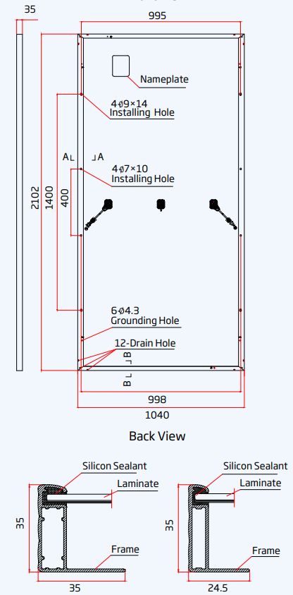 Frame: Encapsulant Material EVA/POE, 35 mm ( 1.38 inches) Anodized Aluminium Alloy